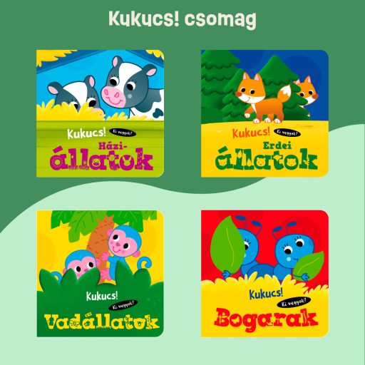 Az oroszlán, az elefánt, a zebra és más vadállatok kelnek életre ebben a kötetben, amely a dzsungel és szavanna izgalmas világát hozza el a legkisebbek számára. A Kukucs! Vadállatok lapozóban minden oldal új kalandot kínál: a gyerekek felfedezhetik, melyik állat bújt el, megtippelhetik, majd ellenőrizhetik válaszaikat a kihajtható részek mögött.