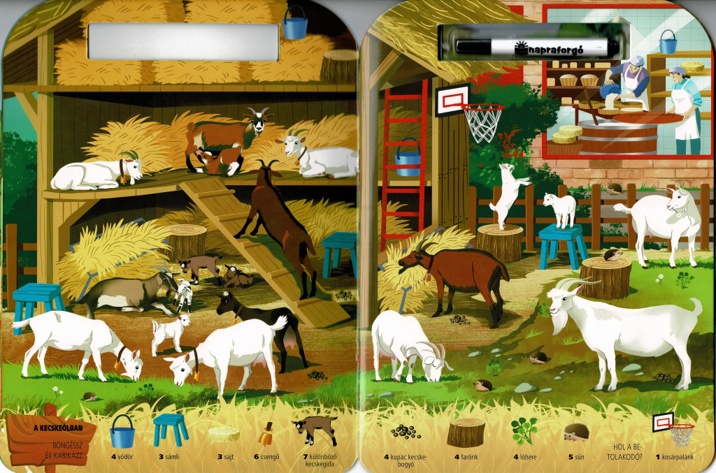 Mit ad hozzá a sorozat különlegessége? A letörölhető, filctollal használható oldalakon a „keresd meg és karikázd be” mechanika azonnali sikerélményt kínál. A tematika a gyerekek természetes kíváncsiságára épít: a tanyán zajló élet tele van mozgalmas jelenetekkel, állathangokkal és ismerős tárgyakkal, amelyekkel könnyű kapcsolatot teremteni. A vizuális rejtvények változatos nehézségűek, így az óvodás korosztály különböző szintjein is motiváló kihívást jelentenek.